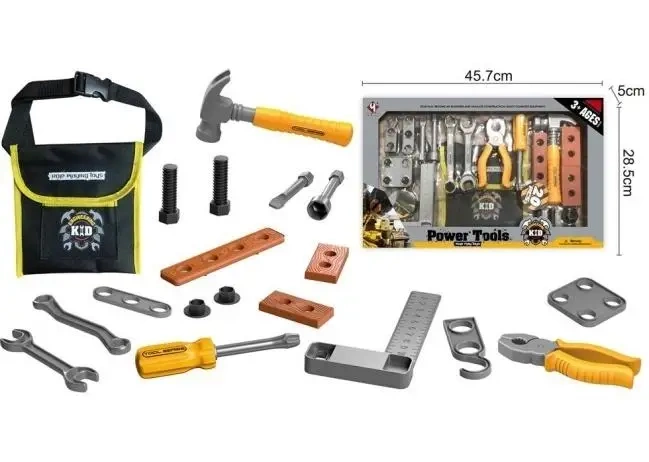 Power Tools KID Zestaw Narzędzi, to kompleksowy pakiet dla każdego dziecka, które marzy o zostaniu inżynierem lub budowniczym. Zabawka przeznaczona dla dzieci w wieku 3 lata i starszych, zapewnia bezpieczne warunki do symulowania prac budowlanych i majsterkowania. Opakowanie ma wygodne wymiary 45,7 cm szerokości, 28,5 cm wysokości oraz 5 cm głębokości, co ułatwia przechowywanie zestawu. W środku znajdziemy bogaty asortyment plastikowych narzędzi, w tym klucze nasadowe i płaskie, kombinerki, różnego rodzaju śrubokręty, młotek oraz elementy konstrukcyjne, które pozwalają na realistyczną i angażującą zabawę. Zestaw doskonale wspiera rozwój koordynacji wzrokowo-ruchowej, precyzji oraz kreatywnego myślenia, jednocześnie ucząc podstawowych zasad posługiwania się narzędziami. To gwarancja wielu godzin edukacyjnej i radosnej zabawy w rolę dorosłego.