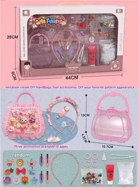 Zestaw kreatywny DIY Cute Fun Bag BZ1902 to fantastyczna propozycja dla małych twórców i miłośniczek mody. Umożliwia samodzielne ozdabianie przezroczystej torebki oraz tworzenie unikalnych akcesoriów do włosów takich jak opaski, spinki i gumki. W zestawie znajduje się imitacja kremu do precyzyjnego dekorowania, która pozwala uzyskać trójwymiarowe wzory. Do dyspozycji są także liczne elementy dekoracyjne wybrane losowo random takie jak urocze naklejki, koraliki, kokardki, korony oraz brokatowe posypki. Wymiary przezroczystej torebki to około 10,7 cm szerokości i 4,5 cm wysokości bez uchwytu, co daje idealną bazę do personalizacji. Opakowanie zawiera również gotową różową torebkę z falbankami jako inspirację oraz opaskę do włosów z kwiatuszkami i laleczką. Produkt zachęca do kreatywnej zabawy, rozwijania zdolności manualnych oraz wspólnego spędzania czasu rodzic-dziecko start happy parent-child time. Cały zestaw jest zapakowany w estetyczne pudełko o wymiarach 44 cm x 28 cm x 6 cm. Idealny prezent dla dzieci od 3 roku życia. Stwórz swój ulubiony wzór i wygląd torebki oraz akcesoriów DIY your favorite pattern appearance.