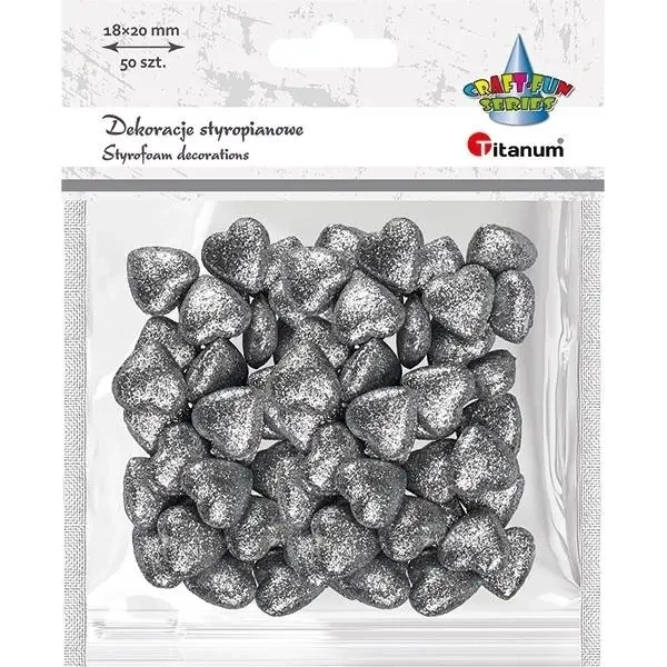 Styropianowe serca 19x19mm srebrne 50szt - Titanum