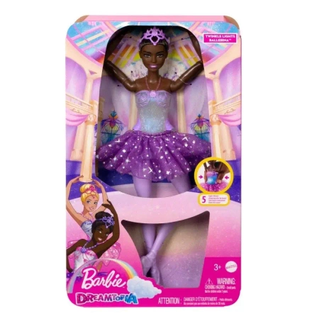 - W świecie baletu wszystko zyskuje magiczny wymiar. Podziwiaj, jak lalka baletnica Barbie migocze i mieni się dzięki światełkom.