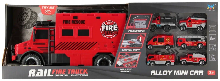 Zalety produktu samochód posiada funkcję pull back dzięki czemu po pchnięciu pojazdu do przodu kontynuuję jazdę samodzielnie, posiada efekty dźwiękowe oraz świetlne. Auto strażackie Transporter to idealna zabawka dla małych miłośników straży pożarnej Ten solidny pojazd został zaprojektowany z dbałością o szczegóły, by dostarczać dzieciom wiele godzin ekscytującej zabawy i rozwijać ich wyobraźnię. Zawartość zestawu samochód strażacki transporter, 6 x małych samochodów strażackich. Zestaw wykonany z plastiku oraz gumy. Wymiary/waga/baterie wymiary produktu dł. x wys. x gł. cm 0,94 kg, wymiary opakowania dł. x wys. x gł. cm 1,21 kg, wymaga zasilania bateriami 3 x AG13- załączono do zestawu. Zabawka przeznaczona dla dzieci w wieku 3 . Pakowana w kartonik z otwartym okienkiem. W kartonie zbiorczym po 20 szt.