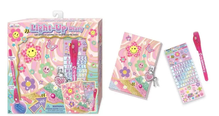 Okładka pamiętnika jest dodatkowo podświetlana kolorowymi mini-światełkami, które podświetlą się po naciśnięciu przycisku!!