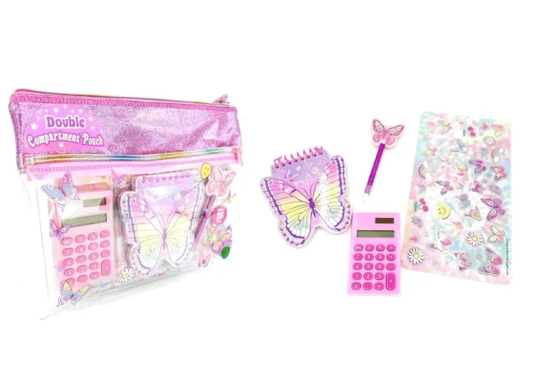 Zestaw z kalkulatorem w saszetce Motylki - Hot Focus