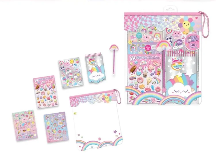 Mega zestaw naklejek z długopisem w saszetce Słodycze - Hot Focus