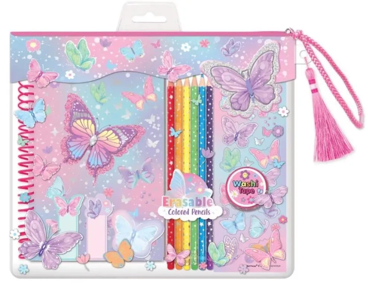 Notatnik na spirali z kredkami Motylki - Hot Focus