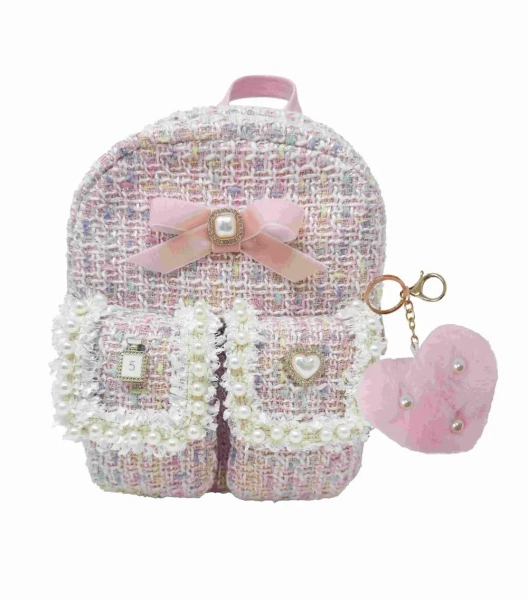 Wykonany z materiału tweed i ozdobiony mnóstwem akcesoriów, stylizowany i inspirowany trendami z najbardziej znanych domów mody. Dołączony pasujący miękki pluszowy breloczek dla dodatkowego dekoracyjnego efektu.