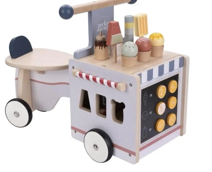 Drewniany rowerek biegowy Lodziarnia Jack & Jacky Podaruj swojemu dziecku wyjątkową zabawkę, która łączy ruch, kreatywność i radość z zabawy! Drewniany rowerek biegowy Lodziarnia Jack & Jacky to idealny wybór dla małych odkrywców, którzy uwielbiają aktywną zabawę i wcielanie się w rolę sprzedawcy lodów.