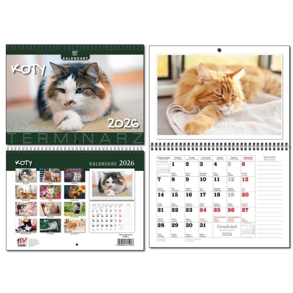 Kalendarz 2026 A3 terminarz 13p Koty - EV-Corp