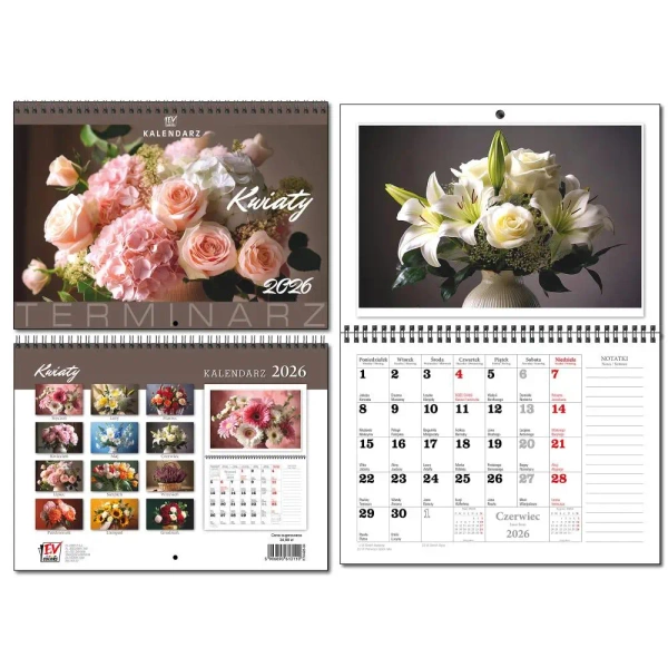 Kalendarz 2026 A3 terminarz 13p Kwiaty - EV-Corp