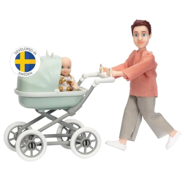 Lalka tata mężczyzna z dzieckiem i wózkiem - MICKI