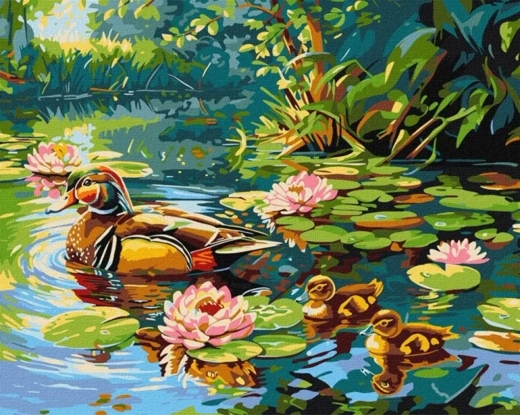 Malowanie po numerach - Kacza rodzina 40x50cm - Ideyka
