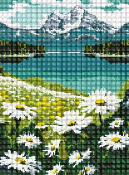 Diamentowa mozaika - Kwitnące stokrotki 30x40cm - Ideyka
