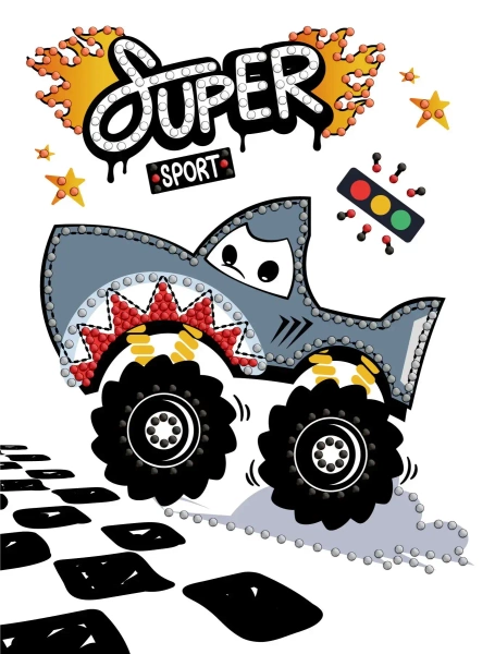 Diamentowa mozaika - Samochód rekin 15x20cm - Ideyka