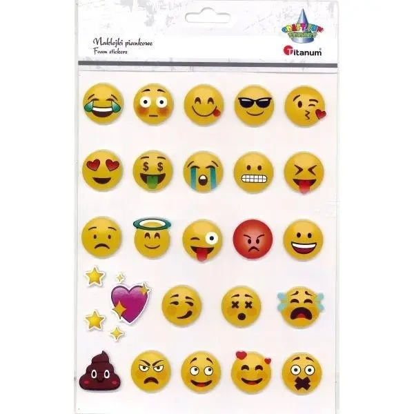 Naklejki 3D papierowe na piance emotki 28mm 28szt - Titanum