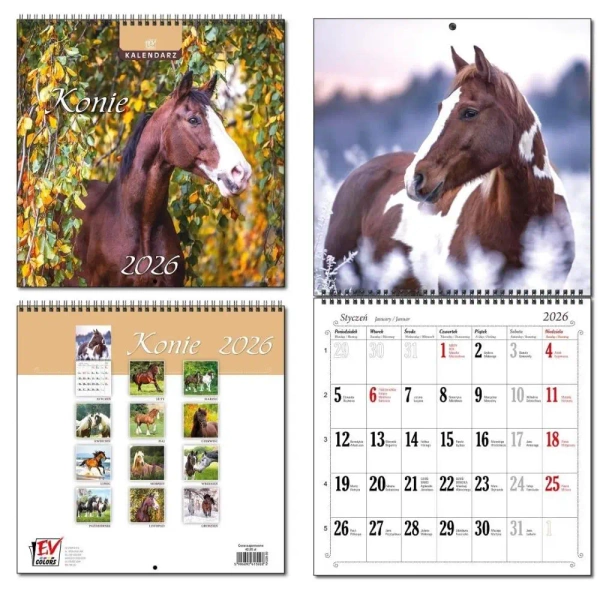 Kalendarz 2026 30x60 13 planszowy Konie - EV-Corp