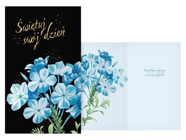 Karnet urodzinowy z tekstem. Papier: papier pocztówkowy 240 g