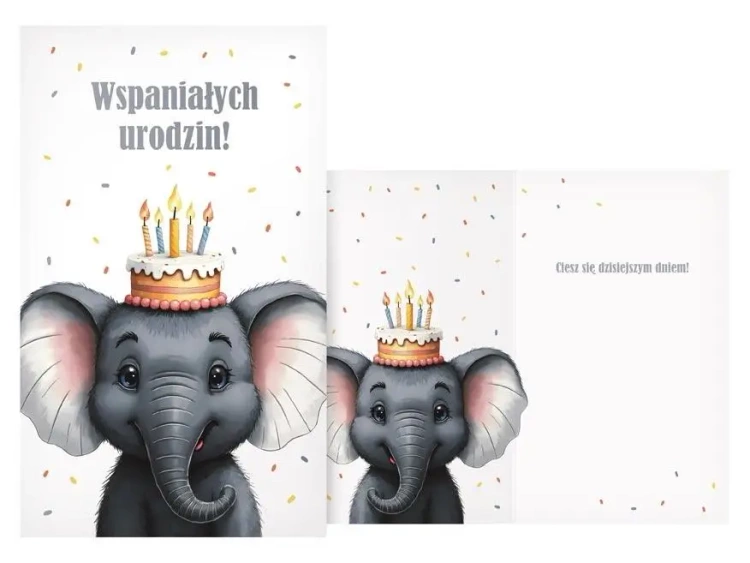 Karnet urodzinowy z tekstem. Papier: papier pocztówkowy 240 g