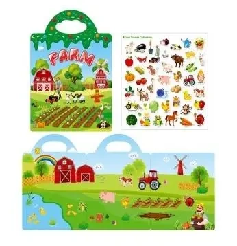 - naklejki można dowolnie przyklejać i odklejać, tworząc w książce scenki i dopasowywać kształty