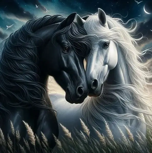 Diamentowa Mozaika Konie biały i czarny w zbożu NO-2002223 - Norimpex