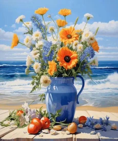 Diamentowa Mozaika Kwiaty w wazonie nad brzegiem morza NO-2000167 - Norimpex