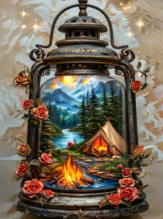 Diamentowa Mozaika Lampion z namiotem i ogniskiem w górach NO-2003111 - Norimpex