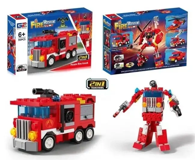 Odkryj podwójną zabawę z zestawem konstrukcyjnym Fire Rescue 2w1! Ten innowacyjny zestaw klocków pozwala na zbudowanie dwóch różnych form: realistycznego, czerwonego piankowego wozu strażackiego lub imponującego robota transformującego. Z 95 elementów, zestaw jest idealny dla dzieci od 6 roku życia, rozwijając ich zdolności manualne i kreatywność. Wóz strażacki wyposażony jest w funkcję pull back, co pozwala na dynamiczną zabawę, oraz strzelającą armatkę wodną, dodającą realizmu podczas odgrywania akcji ratunkowych. Dzięki możliwości transformacji, dzieci mogą łatwo przechodzić od odgrywania ról strażaka do ekscytujących przygód z robotem. Specyfikacje i kolory mogą nieznacznie różnić się od przedstawionych na ilustracjach. Zestaw gwarantuje godziny wciągającej zabawy i jest świetnym prezentem dla każdego małego miłośnika pojazdów ratunkowych i robotyki.