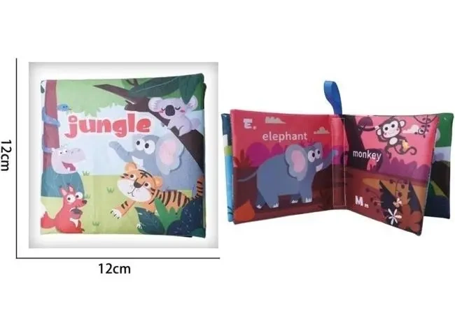 Ta urocza, miękka książeczka materiałowa to idealny pierwszy krok w świat nauki i zabawy dla Twojego maluszka. Zaprojektowana specjalnie z myślą o niemowlętach i małych dzieciach, wspiera rozwój sensoryczny i motoryczny. Książeczka o tematyce dżungli prezentuje zwierzęta takie jak słoń, małpa, tygrys czy koala, a każda strona łączy zwierzę z odpowiadającą mu literą, na przykład E. elephant i M. monkey. To świetny sposób na wczesną naukę alfabetu i rozpoznawanie zwierząt. Książeczka jest wykonana z nietoksycznych, bezpiecznych i trwałych materiałów, które są odporne na ślinienie i pranie. Jej niewielkie wymiary 12 cm na 12 cm sprawiają, że jest idealna dla małych rączek, łatwa do chwytania i przenoszenia. Wbudowana tasiemka umożliwia przymocowanie jej do wózka, łóżeczka czy fotelika samochodowego. Intensywne, kontrastowe kolory i proste ilustracje stymulują wzrok dziecka. To fantastyczny pomysł na prezent, który łączy edukację z zabawą.