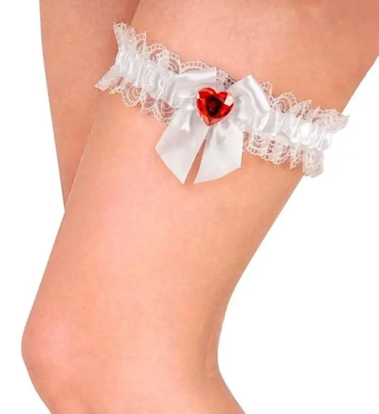 Biała podwiązka z czerwonym kryształowym sercem - Widmann