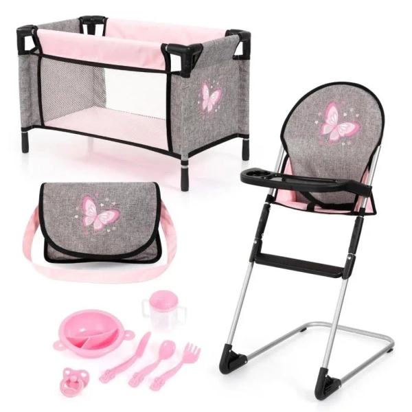 Zestaw podróżny 9w1 z łóżeczkiem i krzesełkiem w kolorze szarym