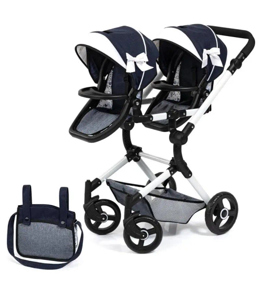 Wózek dla lalek bliźniaczych Twin Neo niebieski