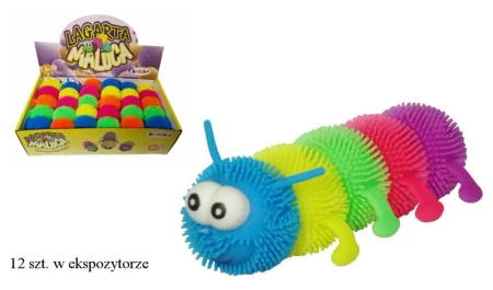 Gniotek świecący gąsienica. Główne cechy produktu: pięciokolorowy wygląd, gumowa tekstura, świeci po uderzeniu, przyjemne gumowe włoski. Gniotek działa na baterie AG3. Baterie znajdują się w zabawce. Produkt występuje w kilku wersjach kolorystycznych, kolor wybierany losowo. Cena dotyczy jednej sztuki.