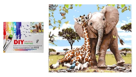 Malowanie po numerach Słoń z żyrafą - SWEDE
