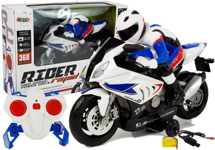 Motocykl zdalnie sterowany biały - Leantoys