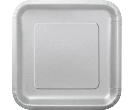 Talerzyki papierowe srebrne 23cm kwadratowe 14szt - Godan