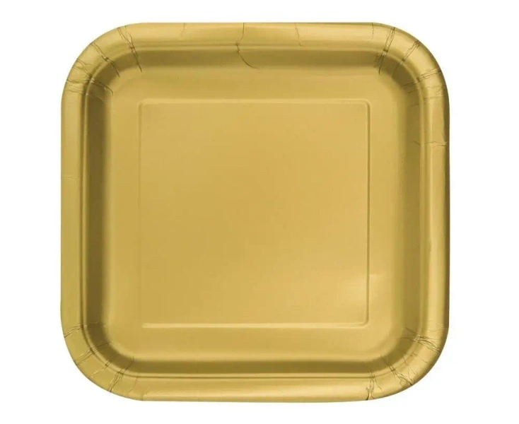 Talerzyki papierowe złote kwadratowe 18cm 16szt - Godan