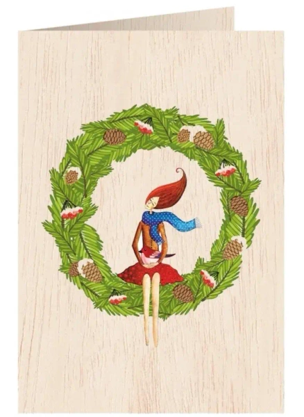 Karnet drewniany C6 + koperta Święta Wieniec - Cozywood