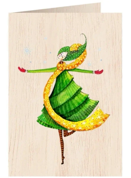 Karnet drewniany C6 + koperta Święta Tańcząca - Cozywood