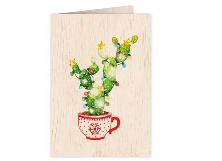 Karnet drewniany C6 + koperta Święta Kaktus - Cozywood