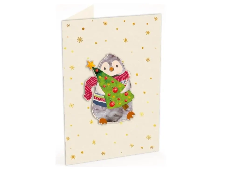Karnet C6 naklejany + kop. Święta Pingwinek - Cozywood