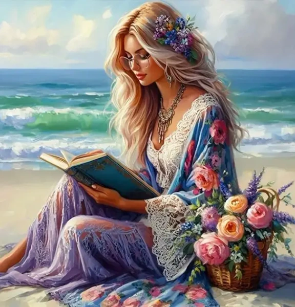 Diamentowa Mozaika Kobieta czytająca na wybrzeżu NO-2001851 - Norimpex