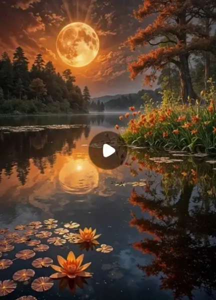 Diamentowa Mozaika Krajobraz pełnia księżyca nad jeziorem z liliami NO-2003124 - Norimpex