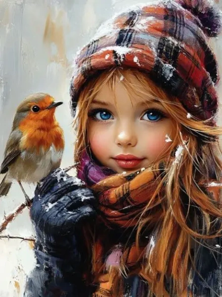 Diamentowa Mozaika Zima Dziewczynka z ptakiem NO-2003013 - Norimpex