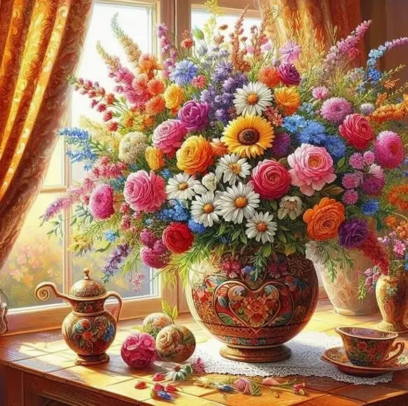 Diamentowa Mozaika Kwiaty bukiet przy oknie NO-2002157 - Norimpex
