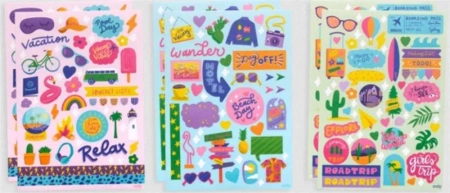 Ponad 200 naklejek o tematyce kolorowych podróży! Zestaw zawiera: 1 arkusz miękkich, piankowych naklejek, 1 arkusz naklejek winylowych, 6 arkuszy naklejek papierowych i praktyczną kopertę do ich przechowywania. Idealny do dekorowania dzienników, pamiętników, plannerów podróży, a także nudnych walizek! Rozpocznij uśmiechniętą, naklejkową zabawę!
