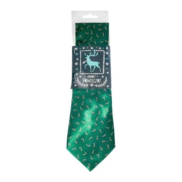 Przedstawiamy elegancki świąteczny krawat w kolorze zieleni. Niezwykle stylowy i pełen świątecznego uroku, idealny na szczególne okazje, które pojawiają się w grudniowym kalendarzu. Cieszy oko swoją intensywną zielenią, odwołującą do koloru choinki, i nadaje elegancji każdemu świątecznemu strojowi.