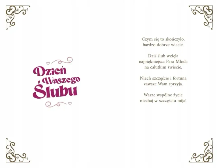 Karnet 5k to wyjątkowy pomysł na sprawienie obdarowanej nim młodej pary wesołej i niebanalnej niespodzianki. Wykonane z wysokiej jakości grubego papieru o gramaturze 350g i uszlachetnione lakierem UV oraz tłoczonym złoceniem .Oryginalne i wesołe teksty zaskoczą każdą młodą parę i z pewnością wywołają uśmiech na ich twarzy. Karnet może być idealnym dodatkiem do każdego prezentu. Karnet zawiera również humorystyczne życzenia.