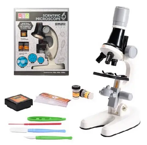 Mikroskop edukacyjny dla dzieci to doskonały sposób na rozwijanie ciekawości świata i pierwsze kroki w nauce biologii. Dzięki niemu mali naukowcy mogą obserwować drobne przedmioty, owady, liście czy włókna tkanin w powiększeniu, ucząc się przez zabawę. Mikroskop ma powiększenie 100x, 400x, 1200x. W zestawie oprócz mikroskopu można znaleźć między inymi: szkiełka, buteleczki, nożyki. Produkt zapakowany w kartonowe pudełko. Produkt działa na baterie AA. Baterie nie są załączone.