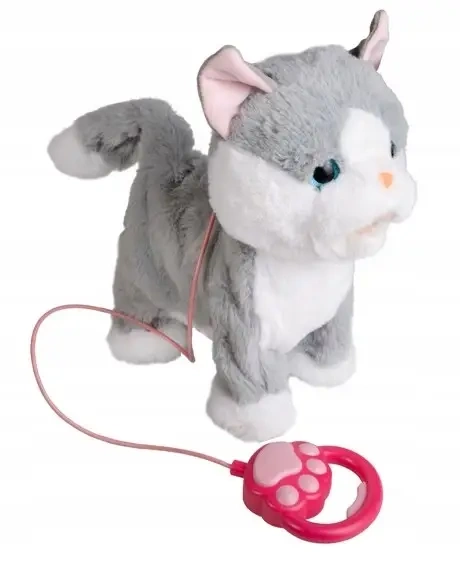 Pluszowy Kot interaktywny chodzący szary na smyczy - Norimpex