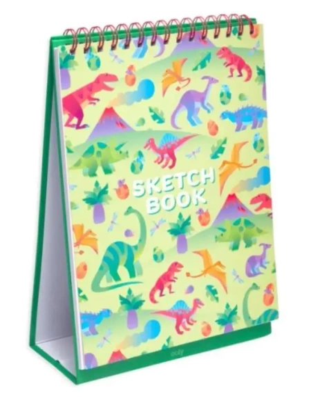 T-rex, brontozaur i inne dinozaury tworzą ciekawą okładkę wyróżniającego się designem szkicownika. Można rysować, a potem prezentować swoje prace za pomocą specjalnej podstawki - ten wyjątkowy szkicownik ma wbudowany własną, tekturową sztalugę! Kolorowe motywy dinozaurów podpowiadają nam, że właśnie tu rozpoczyna się kreatywna przygoda!