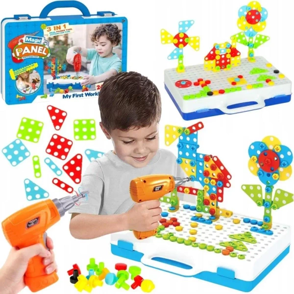 Zestaw Konstrukcyjny MAGIC PANEL 3 w 1 - Tablica z Wiertarką i Klockami